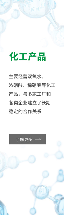 安徽安德諾化工產(chǎn)品銷售有限公司:位于合肥市蜀山區(qū),交通便利,主要經(jīng)營雙氧水(27.5%、35%、50%)、濃硝酸(98%)、稀硝酸(40%~68%)等化工產(chǎn)品,與多家工廠和各類企業(yè)建立了長期穩(wěn)定的合作關(guān)系。公司產(chǎn)品齊全,實力雄厚,重信用、守...